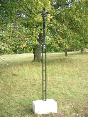 Wegkreuz, nordwestlich der Frauenbergkapelle, schlanke Metallkonstruktion mit barockisierendem Gekreuzigten, spätes 19. Jahrhundert