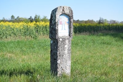Limestone pillar, 18./19. Jahrhundert, „naive“ Bemalung aus jüngerer Zeit; an der Straße nach Hirschberg