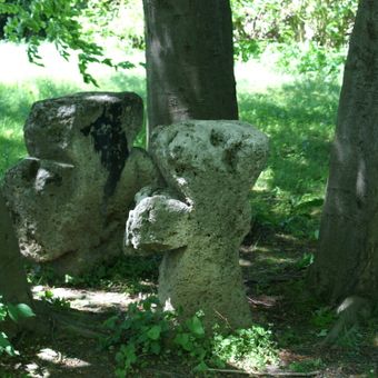 Zwei Steinkreuze, tuffstein, spätmittelalterlich;