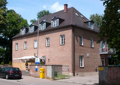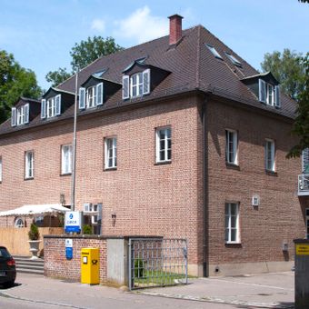 Ehem. Postamt, zweigeschossiger Backsteinbau mit Walmdach, von Georg Werner und Clemens Böhm, um 1930