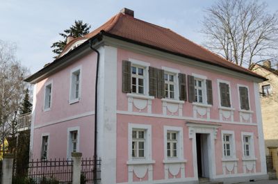 Ehemaliges Rentamt, zweigeschossiges klassizistisches Walmdachhaus mit Ecklisenen, Gurtgesims, Brüstungsfeldern, Rahmungen und Fensterläden