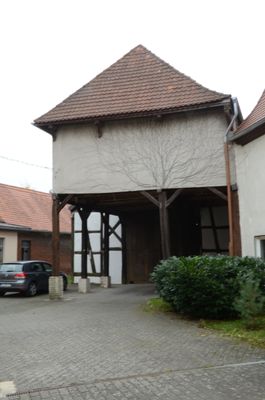Würzburger Straße 5, zweigeschossiger Walmdachbau im Erdgeschoss offen, 18. Jahrhundert