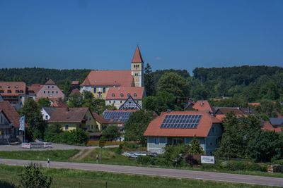 Ensemble Kirchberg Illschwang, das Ensemble, das den Kirchberg von Illschwang umfasst, bietet sich von Süden her in seiner eindrucksvollsten Fernsicht dar. Eingebettet in waldreiches Hügelland nutzt die Bebauung die Gegebenheiten einer Anhöhe aus: Unten am Bachlauf erdgeschossi