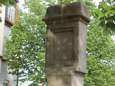Föhrenstraße, sandsteinpfeiler mit Tabernakelaufsatz ohne Relief, wohl frühes 18. Jahrhundert