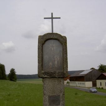 Bildstock an der Lindnermühle, granitschaft mit abgefasten Kanten, Laterne mit korbbogigen Bildnischen, 18./19. Jahrhundert