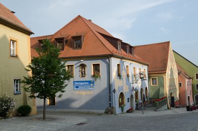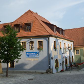 Gasthof Zum Stern, zweigeschossiger Walmdachbau mit erdgeschossigen Stichbogenfenstern, Rundbogenportal mit Granitgewände, im Kern 16./17. Jahrhundert, Sgraffito-Malerei 1930-40;