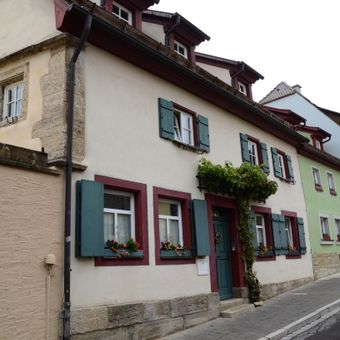 Judengasse 3, zweigeschossiger verputzter Traufseitbau mit steilem Krüppelwalmdach, dendrochronologisch datiert 1533, Umbauten 18. Jahrhundert
