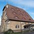 Mühlacker 1, symmetrischer Bruchsteinbau mit Stützpfeilern und steilem Krüppelwalmdach, Neubau von 1561, nach Brand 1953 wiederhergestellt