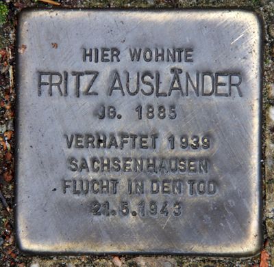 Stolperstein dedicated to Fritz Ausländer, Stolperstein in Berlin-Tegel