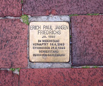 Stolperstein dedicated to Erich Paul Jansen Friedrichs, Stolperstein Helgoland