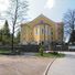 The church building features yellow plastered stone walls, a five-sided altar extension, and a tower with an octagonal dome containing four bells.