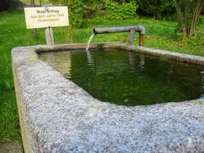 Wohnhaus und Granittrog sowie Viehtränke im Garten Wiesenstraße 18