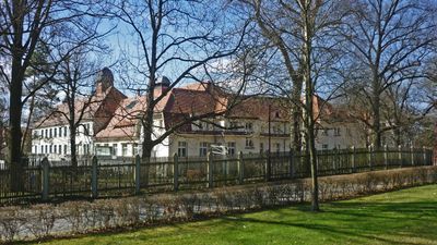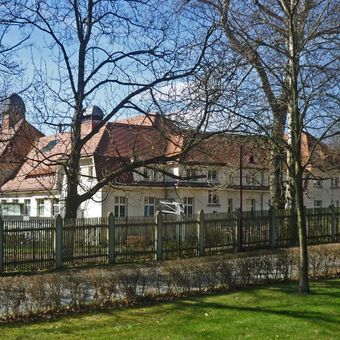 Building A1: Clinic building in the style of reform architecture Hufelandstraße 15, Monument of the entirety Former Royal Saxon Nursing Home Arnsdorf; two-story three-wing building, historical significance