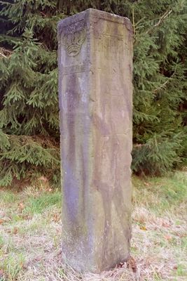 Grenzstein, Inschrift: Dorf Fischbach 1837, ortsgeschichtlich von Bedeutung