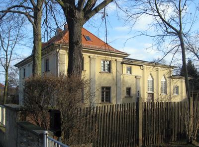 The Marienbrunn Church stands near the Monument to the Battle of the Nations in Leipzig, featuring an Art Deco design without a traditional tower.