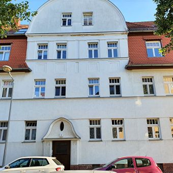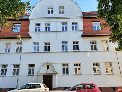 Klingerstraße 4, Mietshaus in Leipzig-Engelsdorf, mit Putzfassade in geschlossener Bebauung