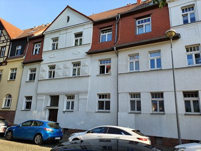 Klingerstraße 6, Mietshaus in Leipzig-Engelsdorf, mit Putzfassade in geschlossener Bebauung