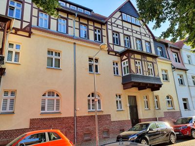 Klingerstraße 8, Mietshaus Klingerstraße 8 in Leipzig-Engelsdorf; mit Putzfassade und Fachwerk im Giebel, in geschlossener Bebauung