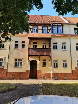 Klingerstraße 9, Mietshaus Klingerstraße 9 in Leipzig-Engelsdorf; mit Putzfassade in geschlossener Bebauung mit Vorgarten