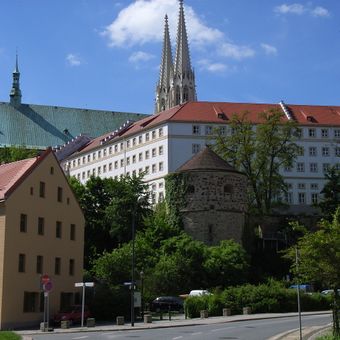 Alle Teile der nördlichen Stadtbefestigung, dazu gehören äußere Zwingermauer und innere Stadtmauer, der Teil der Stadtmauer östlich der Peterskirche bis Neißstraße 12 sowie Grünanlage im Nikolaizwinger zwischen Nikolaiturm und Peterskirche mi