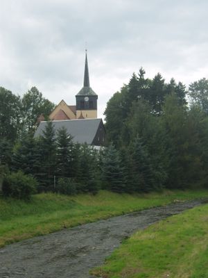 Dreifaltigkeitskirche Neusalza mit Kriegerdenkmal Kirchstraße 15 (bei)