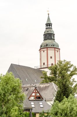 Kirche mit Ausstattung Lutherplatz -, baugeschichtlich, künstlerisch, ortsbildprägend, städtebaulich und ortsgeschichtlich von Bedeutung, eindrucksvolle gotische Hallenkirche, dreischiffig, das Mittelschiff mit 5/8-Schluss, eingezogener Westturm mit barockem Aufbau am nördlichen Stre