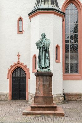 Lutherdenkmal, künstlerisch von Bedeutung, auf hohem Porphyrsockel, vom Bildhauer Paul geschaffen