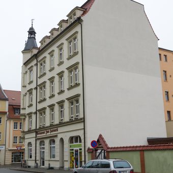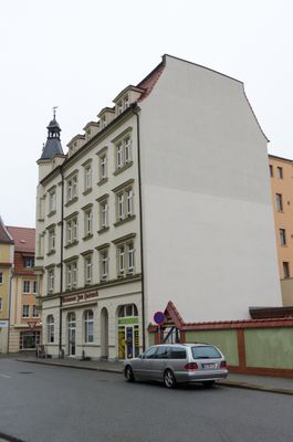Mietshaus Kurt-Pchalek-Straße 1, Mietshaus in Ecklage und in geschlossener Bebauung mit Gedenktafel für Kurt Pchalek; baugeschichtlich und ortsgeschichtlich von Bedeutung