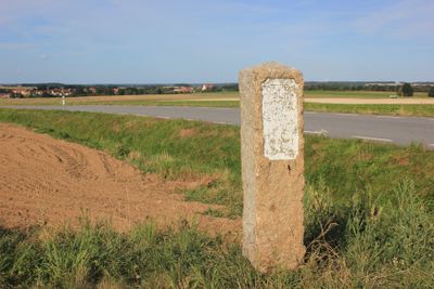 Wegestein Ostro, Verkehrsgeschichtlich von Bedeutung, grob behauene Granitstele mit flachpyramidalem Abschluss, zurückgesetzte und geglättete Schriftspiegel in den oberen Hälften der Seitenflächen, darin schwarz gefasste Inschriften: Ortsangaben Kriepitz, Elstra