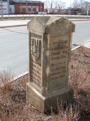 Wegestein am Bahnhof Hohenstein-Ernstthal, verkehrsgeschichtlich von Bedeutung