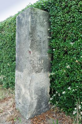 Wegestein Döbeltitz, quadratische Sandsteinstele mit eingemeißelter Inschrift und Richtungspfeilen, von verkehrshistorischer Bedeutung