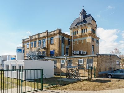 Fabrikgebäude Gerberstraße 1, letzter, größerer Industriekomplex von Bad Düben, architektonisch qualitätvolles Gebäude mit landschaftsbildprägendem Charakter. dreigeschossiger gelber Klinkerbau mit vorgestelltem Turm (Abschluss vermutlich verändert), im Obergeschoss Rundbo