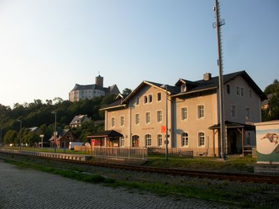Bahnhof Scharfenstein Scharfenstein, Bahnhofsgebäude; zeittypischer Putzbau, verkehrshistorische und ortshistorische Bedeutung