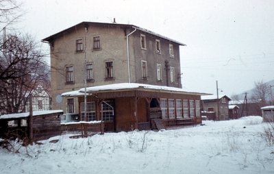 Bahnhof Gottleuba, Bahnhofsgebäude der Bahnstrecke Pirna–Gottleuba – schlichter Putzbau mit flachem Satteldach, eisenbahngeschichtlich von Bedeutung