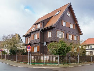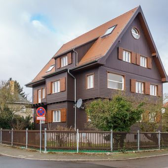 Wohnhaus in halboffener Bebauung und in Ecklage, mit seitlicher Pforte Leipziger Straße 1