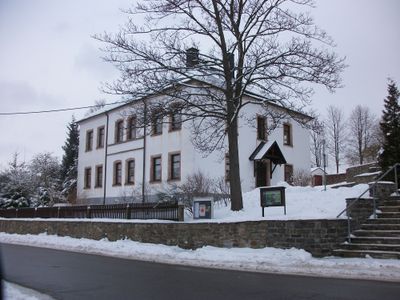 Pfarrhaus Hauptstraße 108, zeittypischer Putzbau mit Porphyrgewänden und Walmdach, baugeschichtliche und ortsgeschichtliche Bedeutung Zweigeschossiger massiver Putzbau, intaktes Wand-Öffnungs-Verhältnis, Walmdach mit Schieferdeckung, im EG noch Winterfenster