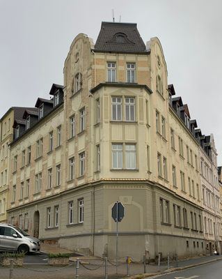 Mietshaus Lungwitzer Straße 23, baugeschichtlich und städtebaulich von Bedeutung, ortsbildprägender Eckbau zwischen Späthistorismus und Jugendstil, Eckbetonung. Urspr. mit Laden, Klinkerfassade, gelber Klinker, Erdgeschoss mit Putz und Putznutung, reich verziert, ortsbildprägen