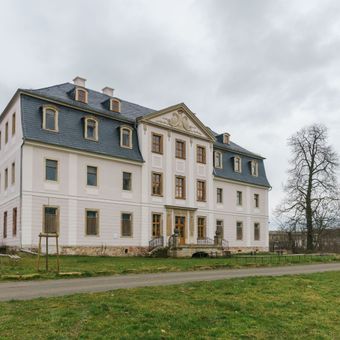 Einzeldenkmal der Sachgesamtheit Rittergut Muckern: Herrenhaus des Rittergutes und Einfriedung zum Gutspark (siehe auch Sachgesamtheitsdokument - Obj. 09303081) Rittergutshof 1
