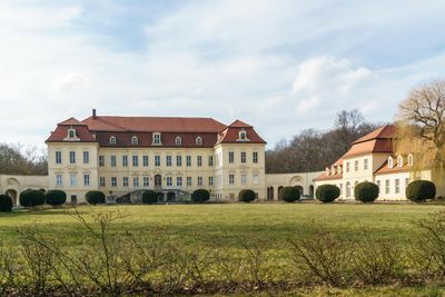 Einzeldenkmale der Sachgesamtheit Schloss, Park und Rittergut Nischwitz: Schloss mit zwei flankierenden Kavaliershäusern und Verbindungsgängen, sogenannter »Point de vue« gegenüber dem Schloss, drei weitere Nebengebäude südli, house in Thallwitz, Germany