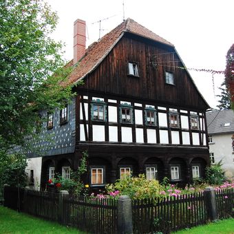 Martin-Niemöller-Straße 4, Upper Lusatian house and outbuilding in Ebersbach