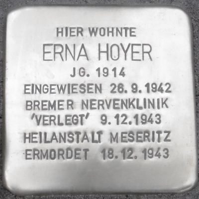 Stolperstein dedicated to Erna Hoyer, Stolperstein in Bremen-Schwachhausen