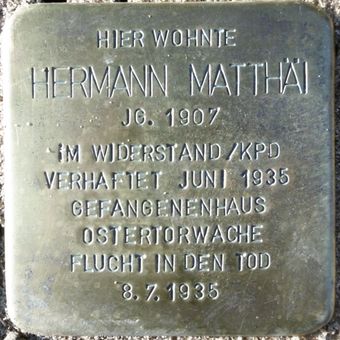 Stolperstein dedicated to Hermann Matthäi, Stolperstein in Bremen-Östliche Vorstadt