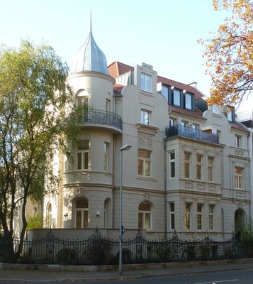 The structure maintains its protected status as an architectural heritage monument, demonstrating the preservation efforts of German residential architecture from the nineteenth century.