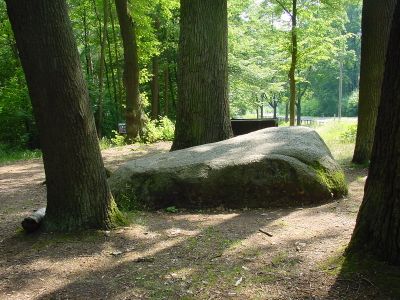 The Lutherstein is a large granite boulder measuring two meters by one meter, located on an elevated area surrounded by oak trees.