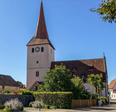 The church building maintains preserved gravestones and cemetery walls on its south side, with access available through Frühmessergasse.
