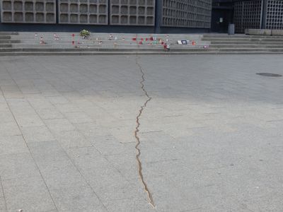 The Goldener Riss stands as a commemorative structure in Berlin, featuring accessibility elements that allow visitors to approach and observe its details closely.