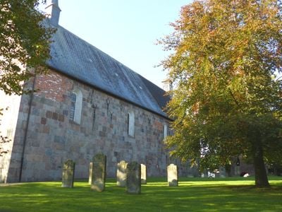 Construction of the church began in 1230, and after a lightning-caused fire in 1630, renovations included adding an oak baptismal font and replacing the vaulted ceiling.