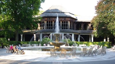 The Atlas Fountain at the park's center was restored in 1952 and serves as a key feature of the neo-baroque design. Next to it stands the protected graduation house, which still provides salt water inhalation treatments for visitors.