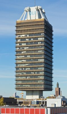 Deutschlandfunk-Funkhaus is a broadcasting complex in Cologne's Marienburg district that rises 102 meters (335 feet) above the city. The 19-story tower contains multiple studios, technical facilities, and offices that support the daily production of radio programs.