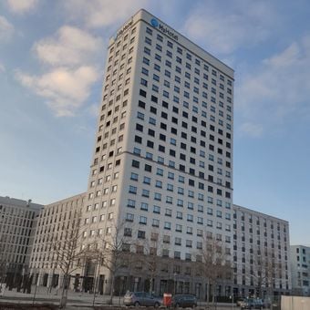 MO82, Contemporary skyscraper in Am Oberwiesenfeld district, Munich, Germany